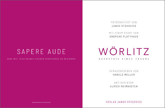 Das Nebeneinander der Fotos ist ein Miteinander, und es werden Übergänge auf den Doppelseiten zu entdecken sein, die nicht natürlich sind, sondern höchst kunstvoll, aber dabei nie künstlich. Auch dieses Buch ist somit ein Bestandteil jenes Zwischenreichs geworden, das das Gartenreich ist, weil hier der Zauber eines fließenden Übergangs regiert. Harmonie ist das Naturgesetz dieser Wörlitzer Weltlandschaft. Damit stellt sie sich paradoxerweise jenseits der Welt, wie wir sie kennen.„