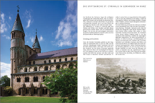 Die Stiftskirche St. Cyriakus im Harzstädtchen Gernrode ist eines der bedeutendsten und im Gesamteindruck besterhaltenen Zeugnisse ottonischer Architektur. Aussenbau und Innenraum bilden in ihrer wirkungsvollen Schlichtheit nicht nur einen Höhepunkt an der Strasse der Romanik in Sachsen-Anhalt, sondern dürfen deutschlandweit als einzigartig gelten. Schon im 10. Jahrhundert gegründet, zählte das Gernröder Damenstift neben Quedlinburg, Gandersheim und Essen zu den vornehmsten Einrichtungen ihrer Art im Reich. Nach einer wechselvollen Geschichte durch die Jahrhunderte wurde die Stiftskirche 1858-1872 unter dem preußischen Konservator Ferdinand von Quast in vorbildlicher Weise restauriert. Der monumentale Bau beeindruckt mit seiner dreischiffigen, kreuzförmigen Basilika mit einfachem Stützenwechsel, Seitenempore und einere der ältesten Hallenkrypten Deutschlands. Bis heute blieben auch der zweigeschossige Kreuzgangflügel an der Südseite und das Heilige Grab im südlichen Seitenschiff erhalten. Hervorragende Architekturfotografien fangen die Faszination des Bauwerks ein. Ein informativer Text zu Geschichte und Ausstattung der Kirche komplettiert den Band.