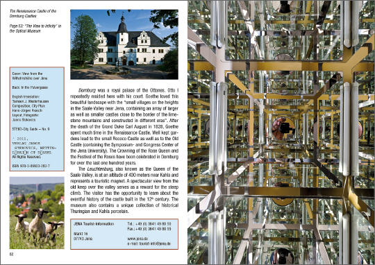 Jena die Stadt der Wissenschaften, florierendes Industriezentrum und ein Ort der Kultur. Die inmitten der malerischen Kernberge gelegene Stadt mit 120000 Einwohnern hat vielfältige historische Traditionen, die sie in bemerkenswerter Weise für die Gegenwart produktiv machen kann. Es lohnt, den Bauzeugnissen vor Ort nachzugehen. In aktuellen Rankings belegt die Saale-Stadt aus Thüringen vordere Plätze. Seit 1236 hat Jena Stadtrecht. 1557 erteilte Kaiser FerdinandI. sein Privilegium zur Gründung einer Universität, die ein gutes Jahrhundert später europaweit als „geistiger Freihafen“ galt. Friedrich Schiller hielt hier 1789 seine berühmte Antrittsvorlesung, in einer Zeit, als Jena ein philosophisches und literarisches Zentrum Deutschlands war. Im ausgehenden 19.Jahrhundert führte die Zusammenarbeit von Carl Zeiß, Ernst Abbe und Otto Schott zu einer einzigartigen Verbindung von Wissenschaft, Forschung und Produktion. All diesen Spuren kann man hier nachgehen, dieser Führer ist dabei ein praktischer Helfer. Jena ist einen Besuch wert.
